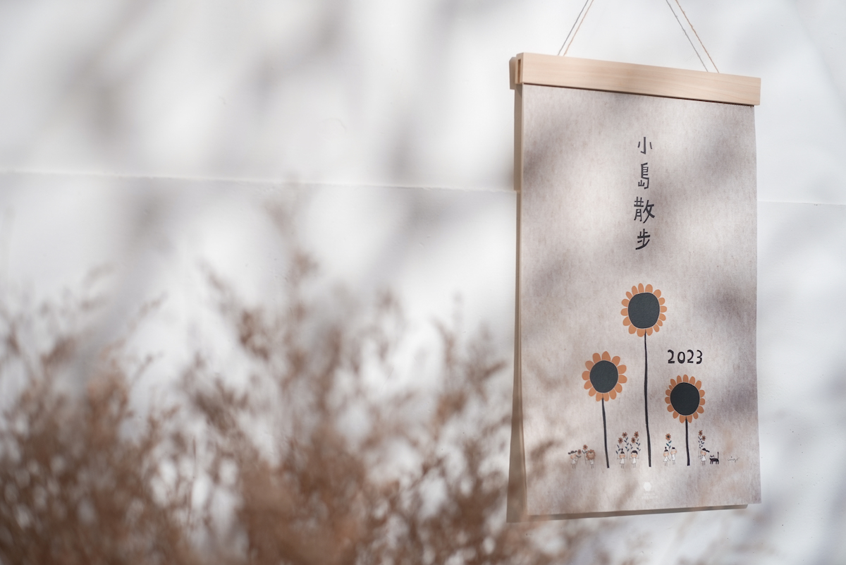 《小島散步》2022 年全新企劃首度跨界布品雜貨,除了木框掛曆與小花園散步小包等聯名合作商品外,並推出天然亞麻聖誕布巾、兔年春聯、小花園 2023 植感桌曆、原木磁吸式掛軸立座組等周邊商品,期待一起把日子過成喜歡的樣子。