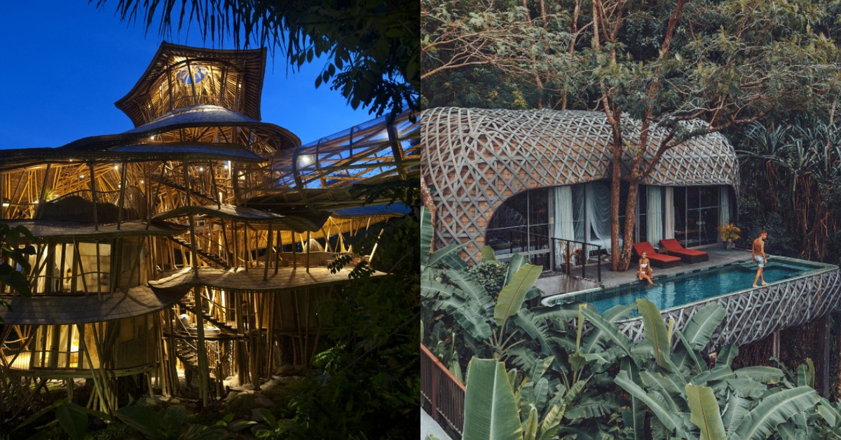 在 2012 年落成之初,即上遍所有建築媒體的 SHARMA SPRINGS IN GREEN VILLAGE,是所有建築人心中「綠建築」的典範。所有遊客一走進這間旅店,第一個看到的就是一個六層樓高的酒店屋頂,層層疊疊的造型靈感源自蓮花,善於處理竹構的印尼 IBUKU 設計,將竹子經過硼元素的處理,在熱帶的東南亞,也不怕蟲害。