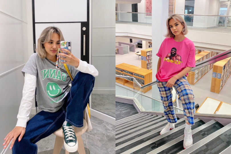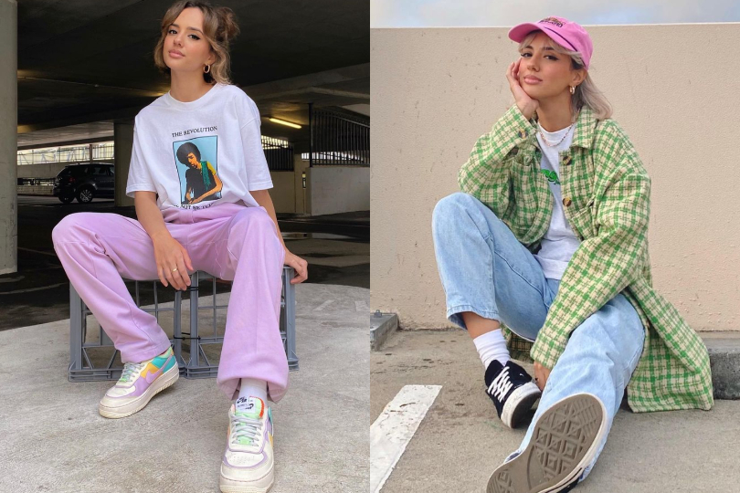 或許校園劇中女王蜂短裙、短 T 的辣妹形象深植你心,但其實全身 oversize 也是美式休閒穿搭很重點的穿法,簡單的寬褲 X Tee 就是新手入門公式,美式休閒都很簡約,不強調過多的層次,但這樣的穿搭隨處可見,要如何穿出美式休閒感就需要畫重點了。首先,可以選擇街頭感的圖樣 TEE,便能讓風格瞬間反轉;再來,相較於日韓穿搭的低彩度,美式休閒則多以高彩度、飽和的顏色為主,紅色、寶藍色、水洗綠、紫色都是美式休閒的常見色,吸睛的顏色讓穿搭即便簡約也很有存在感。