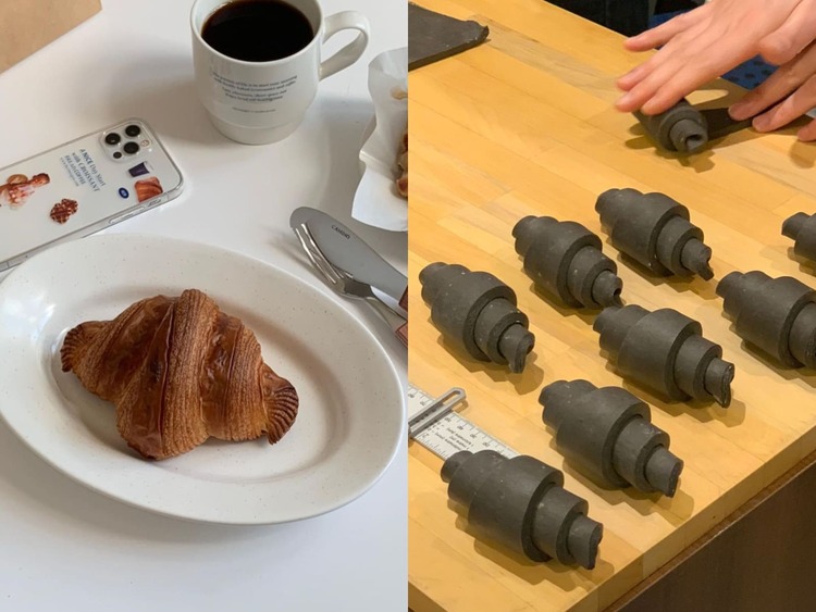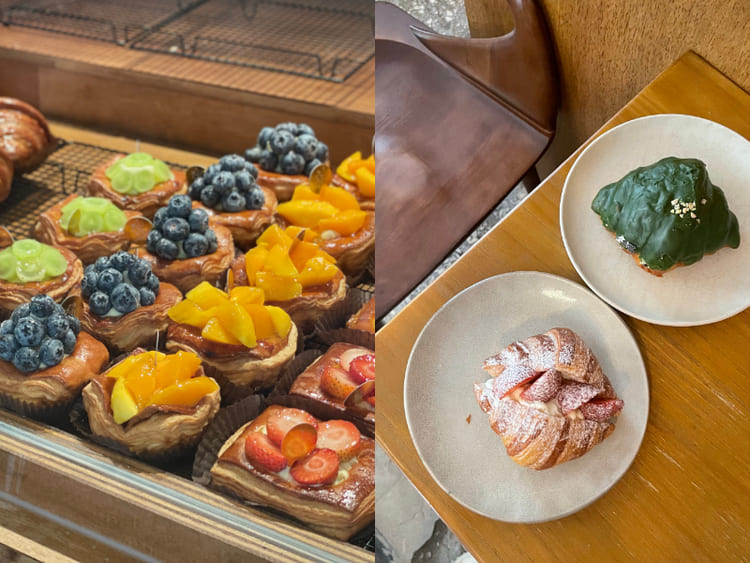 2022 年初開幕就造成轟動的「 Fourninetine Bakery」,潔白外牆及深藍色屋頂打造的簡潔風,是可頌愛好者都知曉的名店之一。可頌都是每天新鮮現烤,其中最厲害的就是切開後的可頌,可以完美看到層層分明的酥脆麵包體,除了熱銷的「紅豆奶油可頌」包著兩大片鹽味奶油,搭配上甜蜜紅豆泥。還有人氣回購款「墨魚藍乳酪可頌」,加了墨魚汁變成吸睛的酷黑可頌,再捲入了藍紋乳酪並撒上 Lotus 餅乾碎,不只外觀讓人流口水,鹹甜味道更是讓人一口接著一口!
