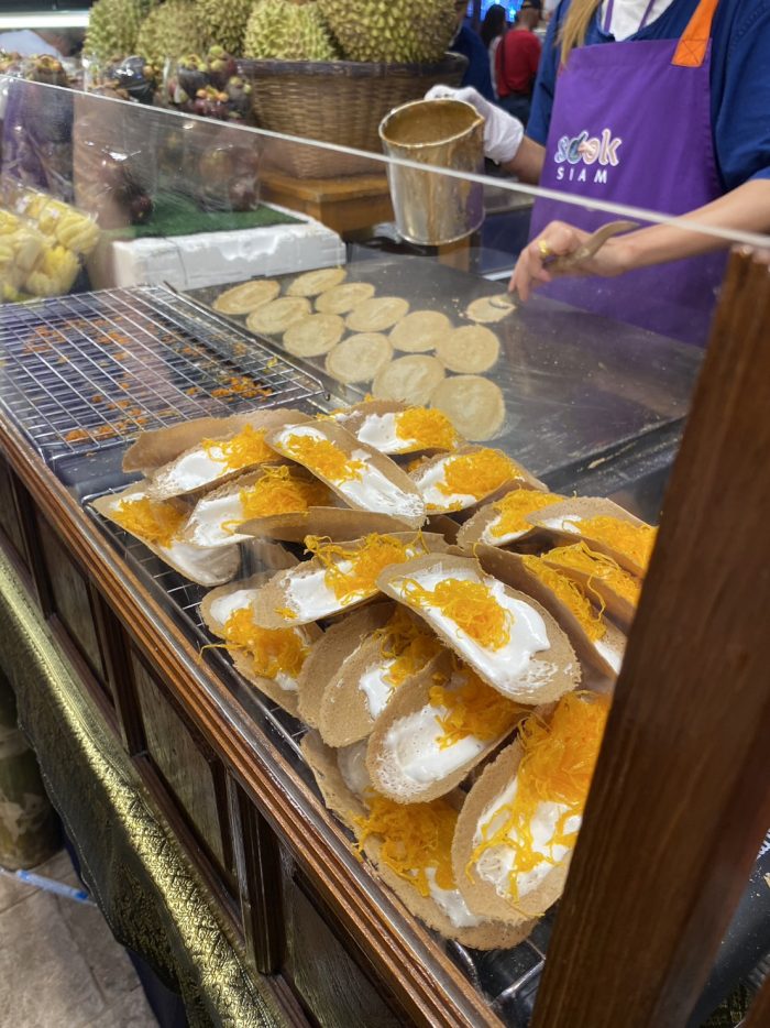 香蕉煎餅也是台灣人去泰國必吃人氣小吃之一,軟軟的餅皮包著香蕉片,還可以依自己喜好淋上煉乳或是巧克力醬,當飯後甜點超合適!不過編輯溫馨提醒,香蕉煎餅剛煎起來裡面真的超級無敵燙,所以不要一拿到就往嘴裡塞哦!