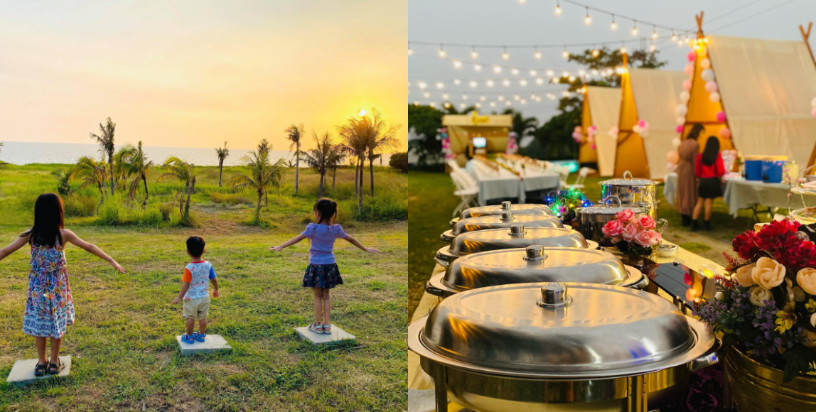 坐在草地上不僅能夠眺望整片大海,,到了傍晚還能迎接最美日落,晚上點燈後更有氣氛,一整個超 Chill。店家還能協助舉辦烤肉趴,價格大約落在 699 元~999 元之間,烤肉趴也可以客製化或包場,不過必須打電話或是私訊店家討論,無論是中秋趴、聖誕趴、跨年趴、單身萬歲趴⋯⋯等,只要你有想法,什麼樣的趴都能實現!〈延伸閱讀:擁抱星空與大海!4 個花東海景露營區推薦,讓海浪聲與璀璨星斗伴你入眠〉