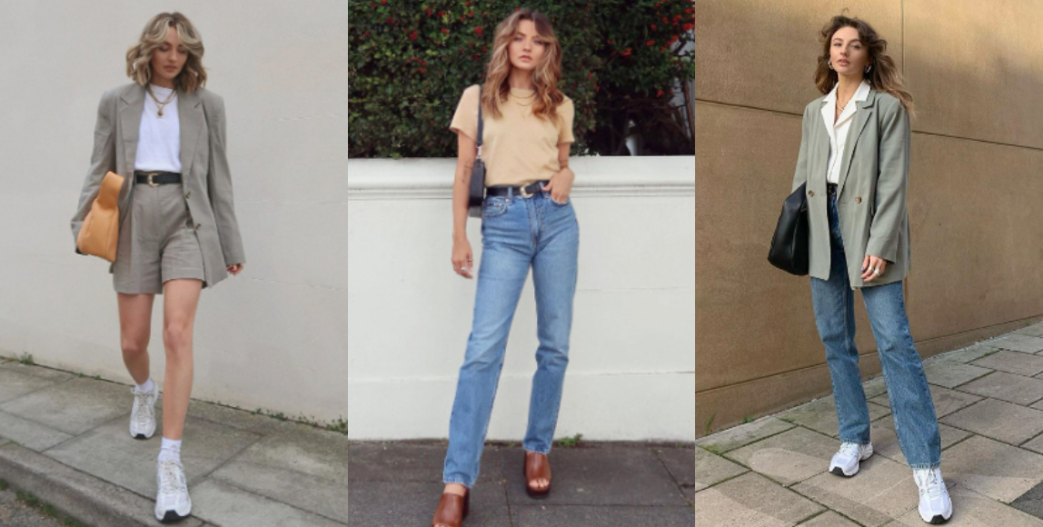 天氣熱的時候最適合穿背心出門,Chole 偏愛削肩和墊肩的款式。削肩可以修飾肩膀和手臂線條,也是一直以來必備的背心款式。墊肩背心也可以修飾手臂的贅肉,讓你立馬有直角肩,看上去更加幹練、俐落。下身可以配上休閒的牛仔褲,或是像 Chole 搭配西裝褲,絕對是職場小資女的必備穿搭!