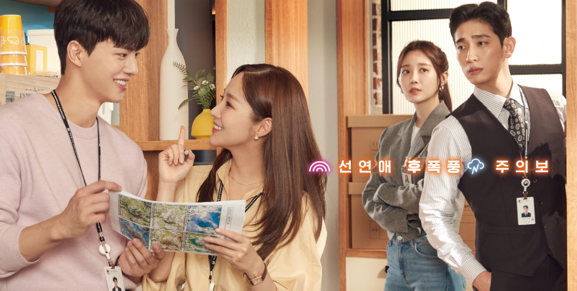 韓國 JTBC 新播出的週末連續劇《氣象廳的人們:社內戀愛殘酷史篇》,由曾執導《山茶花開時》的車榮勳擔綱本劇導演,並由《金秘書為何那樣》朴敏英、《難以抗拒的他》宋江,演出氣象廳辦公室內緊張尷尬又甜蜜動人的姊弟情緣。本劇在台灣已獨家於 Netflix 上架,以現代戀愛的快節奏,結合一連串巧合串起每個角色的關係,每一集的收尾又都伴隨著轉折,搭配高顏值男女主角的演出,也難怪開播迄今始終保持著高人氣。