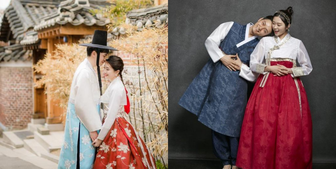 其實現在的韓服都是改良過的,被稱為公主韓服,較能夠符合現代人的審美標準,也能顯現身材比例。上半身大部分是白色,因此下半身建議挑選深色,或是其他能與白色相襯的顏色。另外為了避免拍照時在陽光下過於曝光,可以避開淺色,粉色系的顏色在建築物或風景之下可能也較不突出,大家可以多多參考。