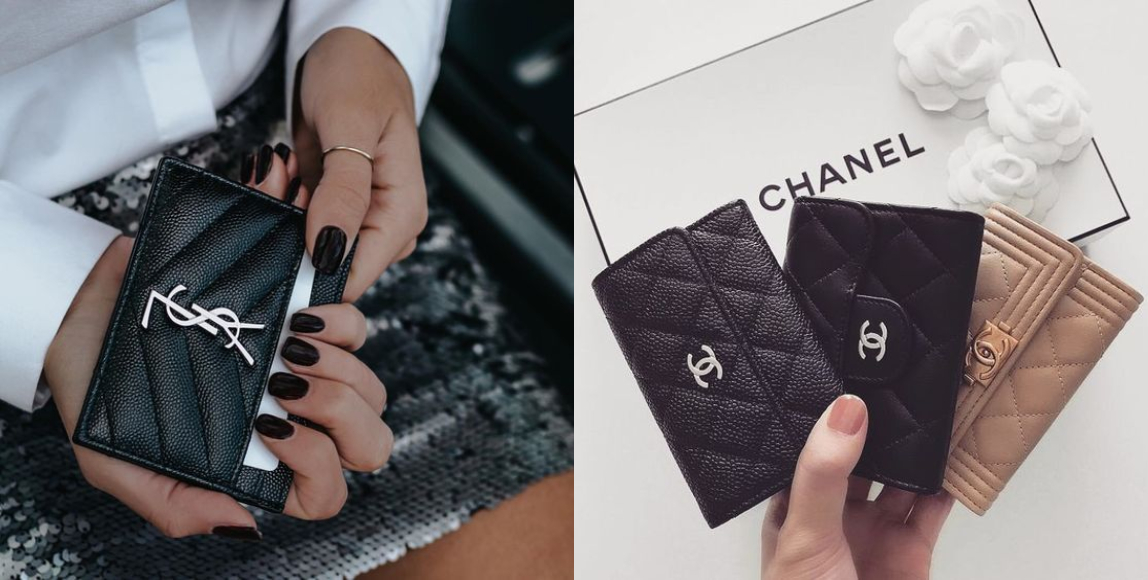東西比較少的女生都喜歡用卡片夾當錢包使用,而且名牌卡片夾定價較親民,普遍在 6000 元左右,因而有許多愛好者。各大品牌的卡片夾設計,一般都是前後各兩個卡位,中間會有一隔暗位,由於卡片夾都是採用皮革的設計,會有彈性,所以一個卡位通常也可放下 2 張卡,一個卡片夾放下 8 張卡並不是問題,中間的隔位可以放入鈔票;至於外形設計方面,由於沒太大的設計空間,像 Saint Laurent、Gucci、Balenciaga 品牌都會以品牌的 logo 為主軸或 logo 燙金,比較特別一點的像 Chloe 和 Valentino,前者用包包系列「C」為設計藍圖,而後者則用標誌性的鉚釘設計。(延伸閱讀:小資女入手款!6 個萬元以下的包包品牌,偶爾寵愛自己一下也很可以)