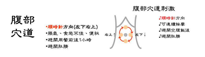 最後,張馨予提醒,生活上可以從養成規律作息避免熬夜、建立運動習慣、三餐均衡飲食、避免宵夜或睡前進食並且攝取充足水量。另外透過腹部的穴位按摩,如臍周的水分穴、中脘穴、天樞穴、關元穴等,可以幫助提升體內的代謝。同時透過中藥及針灸調理體質的作用,幫助體質回歸平和,讓體重控制的過程事半功倍。