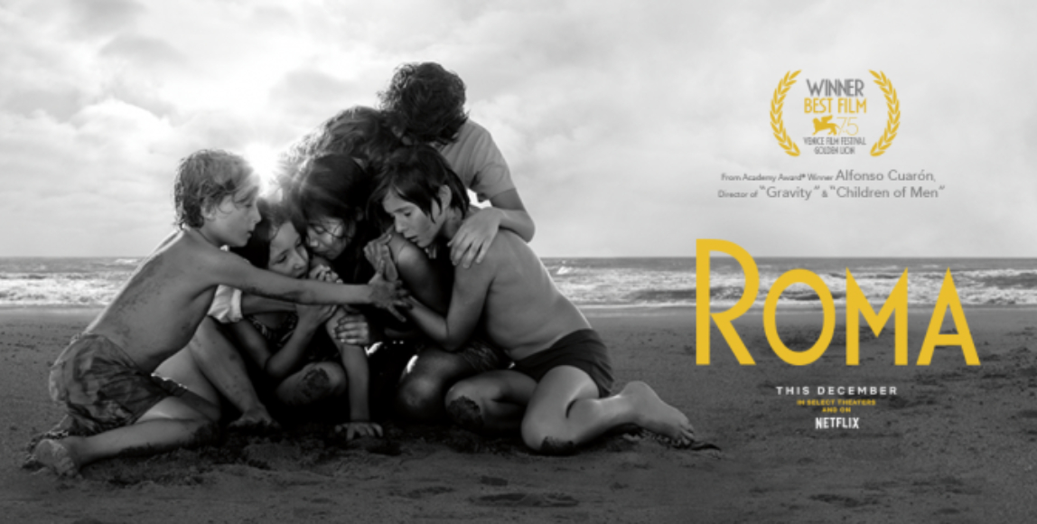 由 Netflix 出品,於 2018 年威尼斯影展的首映的《羅馬》,當年可說是得獎無數,在第 91 屆奧斯卡金像獎甚至奪得「最佳攝影」、「最佳外語片」及「最佳導演」諸多殊榮,是所有 Netflix 出品的電影中,享有最高藝術評價的作品。《羅馬》由曾執導《地心引力》、《哈利波特:阿茲卡班的逃犯》的艾方索柯朗擔任導演、編劇、剪輯,全片改編自導演童年的回憶,並由黑白的方式呈現。