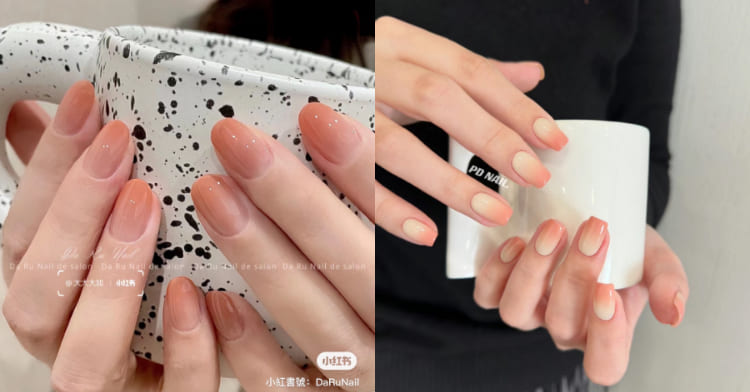 氣質女孩想要挑戰年輕感多一點的色調,則推薦以漸層款式作為首選!不論是橘調又或者粉色調,混搭上相近色系:白、奶黃色、裸色作漸層暈染,都能創造裸甲般的自然氣場,不只百搭耐看,且不挑年紀。