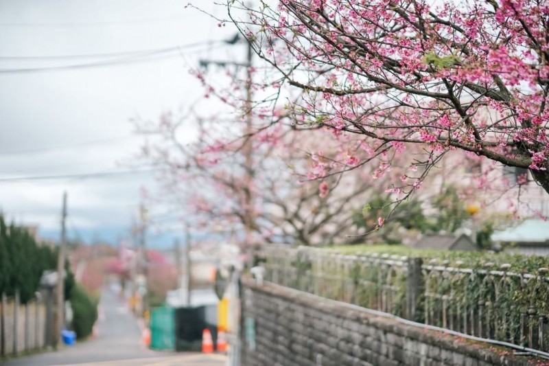 同樣位於陽明山的「平菁街 42 巷」是近期 IG 熱門的櫻花打卡景點,櫻花季時,這裡沿途會有圍牆,而許多櫻花會紛紛從上方探出頭來,非常浪漫,其中又以 42 巷最盛,周遭有許多休閒觀光農園,是值得走春旅遊的好景點!
