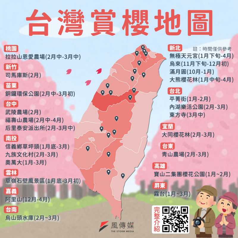 又到賞櫻的季節啦!台灣的櫻花季大約落在每年 1 月至 4 月上旬,多數櫻花會在 2、3 月之間盛開。