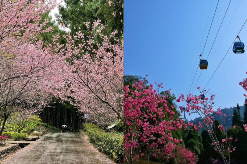 九族文化村也是聲名遠播的賞櫻勝地,每年 2 月都會盛大舉辦「九族櫻花祭」,至今已超過 10 年,九族文化村的櫻花種植的非常集中,園區內有 5000 棵以上的重瓣緋寒櫻、九族百重櫻、枝垂櫻、富士櫻、吉野櫻。一路乘著日月潭纜車到湖岸旁,都能見到盛開的山櫻花。另外,早上如果還看的不夠,九族文化村亦有開放夜晚的賞櫻活動。