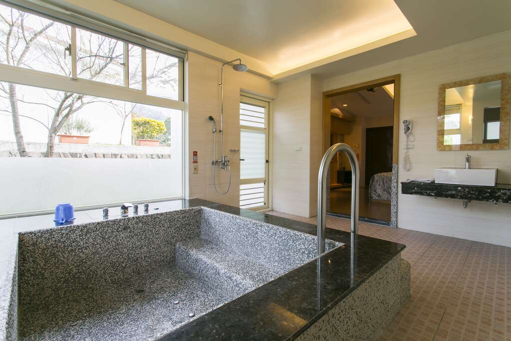 會館共有三種房型:風呂雙人套房、山水四人套房與皇爵雙人套房,房間內一應俱全,也都設有五星級的按摩浴缸,CP 值超高,適合小資家庭在連假期間好好來放鬆一下。〈延伸閱讀:冬天泡湯哪裡去?統整全台 10 個溫泉勝地,讓濃濃的暖意陪你度過冷冽的寒冬〉