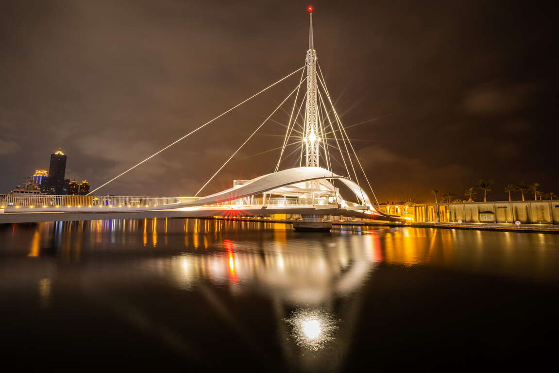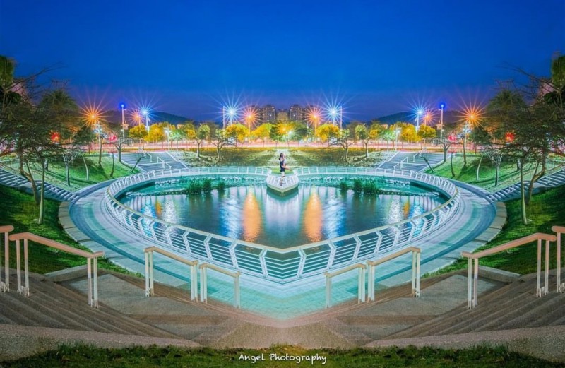 愛河之心由東湖與西湖構成,兩湖中間興建一座橋貫通,形狀似一個心形,是高雄最具代表性的熱門夜景景點。夜幕降臨時,整座橋樑在華麗燈光的映襯下,讓人仿佛置身童話世界,是許多偶像劇取景的熱點呢!