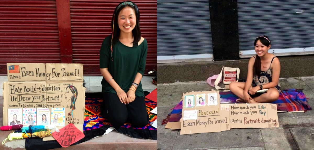 而在車站遇見的老車站長,則是啟程的契機。畢業後,柔安有一次在宜蘭火車站觀察一位老車站長,在車站這樣一個充滿悲歡離合的場合,他仍用充滿活力的音量和每個過客問候。「不用是個多厲害的人,但要是個有故事的人。」有了這樣的體悟,她放棄了即將到手的商業設計工作機會,只帶上 9000 元,便獨自前往越南、柬埔寨、泰國,開始邊旅行、邊街頭賣藝的人生旅程。