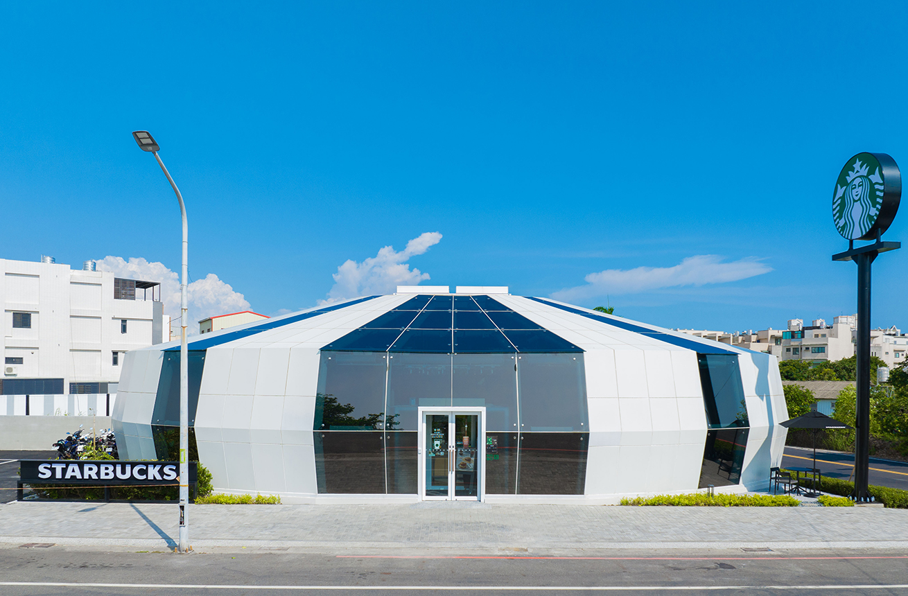 不只東京、上海有限定門市 Greener store,台灣也有了!首家以綠能環保為主軸的星巴克就在台中沙鹿,不只在門市設置水循環系統作為澆灌使用,並搭配數位看板減少紙張浪費,同步提供咖啡渣專區供顧客索取。門市為獨棟設計以山形、海浪的曲線弧形屋頂造型,描繪出如海線湧起的美麗波瀾,也呼應當地層疊起伏的山巒意象。